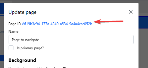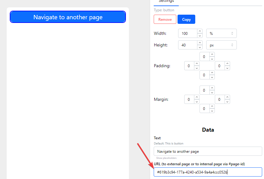 4. Insert page ID to the button (or text, or block) URL field: